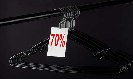 Many black hangers and text 70 percent sale on rod .Black friday.