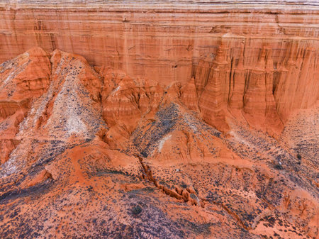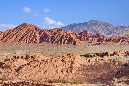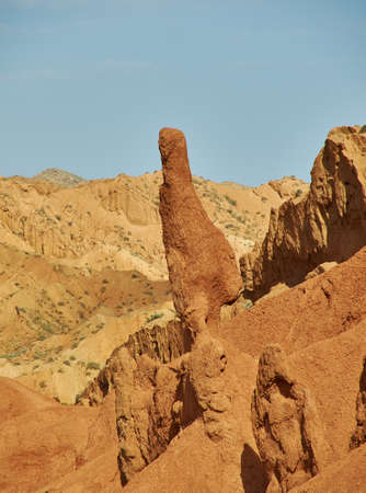 Fairy Tale Canyon, rock formations on the Issyk-Kul lake. Kyrgyzstan Central Asia