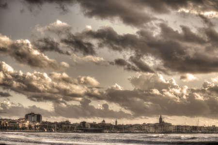 alghero under a cloudy sky. Processed for sepia tone effect.