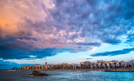 Bari seafront city view at sunset. Coastline