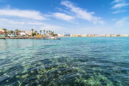 PORTO CESAREO, ITALY - MAY 17, 2015: day view of mediterranean sea and coastline in Porto Cesareo, Italy. Apulia beaches are among the finest in the whole country of Italy.