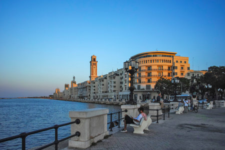 View of Bari promenade, sea shore in the town, Italy