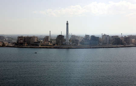 City waterfront with a tall lighthouse, Bari, Italy - September 24, 2012