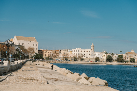 Embankment of small south town Bari in Italy. Panoramic view of Bari promenade