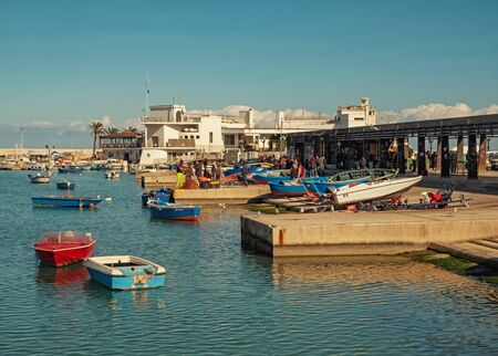 Fishing boats in the harbor of Bari at the Italian coast - BARI, ITALY - OCTOBER 31, 2021