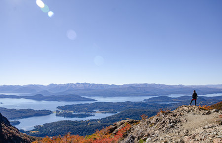 Nahuel Huapi National Park aerial view from the Cerro Campanario viewpoint in Bariloche, Patagonia region in Argentina.