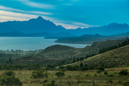 scenic lake district in Patagonia, spectacular landscape with Andes view in Chile and Argentina