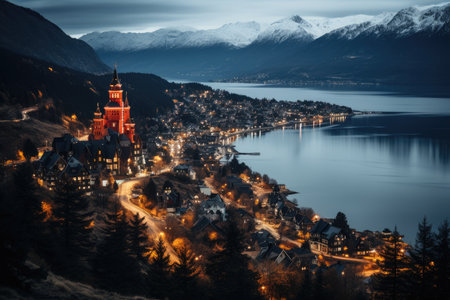 Bariloche Civic Center Alpine architecture and majestic landscape., generative AI
