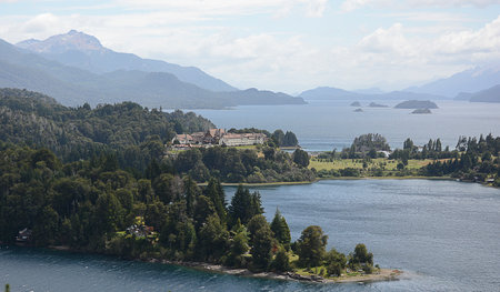 A bird's eye view of the Lake Nahuel Huapi in Bariloche, Argentina.
