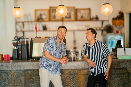 An LGBT couple who runs a coffee shop business owner is busy making coffee with love in his shop But the atmosphere was filled with happiness. which today is the first day to open the shop