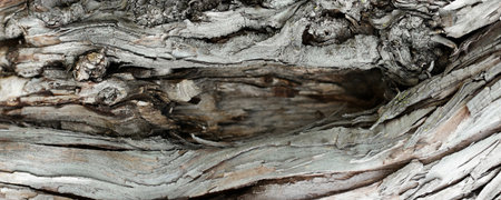 Old wooden tree bark texture. Rustic tree trunk for background usage. Relief texture of the natural tree. Close-up view of natural texture