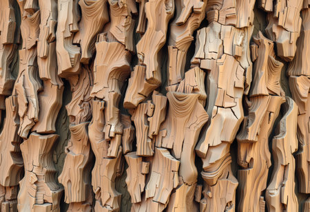 Close-up of a richly textured piece of wood, showing its intricately grain and layered structure. A study in natural beauty.