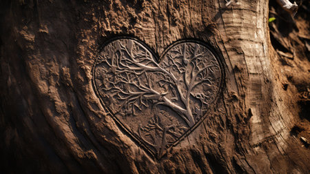 bark tree engraving illustration design trunk, love nature, symbol memory bark tree engraving