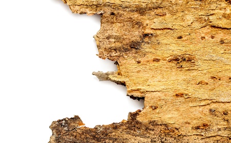 Close-up of brown tree bark against a light gray background, highlighting unique textures and patterns found in nature, ideal for design and creative projects.