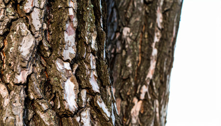 Close up of cracked tree bark texture with copy space background, ideal for natural patterns, rustic design projects, forestry themes, environmental concepts, and organic texture studies.