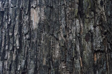Closeup photo of an old tree trunk with cracked bark on it, abstract natural background, autumn season..