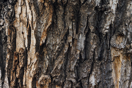 The textures of oak bark reveal intricate patterns and earthy tones. This close-up captures the unique nature of the wood's surface in natural light, highlighting the artistry of nature.