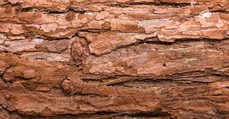 Panoramic photo relief texture of dry tree bark. Brown bark background.