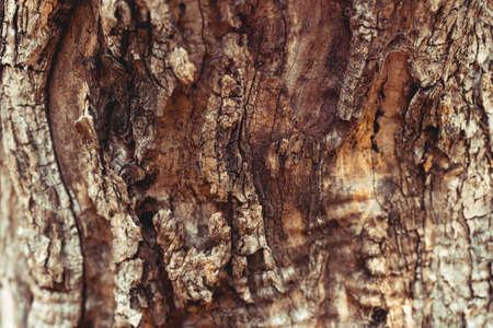 Close up photo of wooden texture on old tree. Selective focus, vintage tone