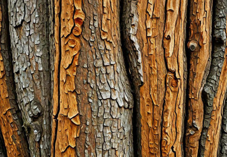 Discover the intricate patterns and textures of natural bark in this close-up image, showcasing the beauty of organic materials in a rustic design.