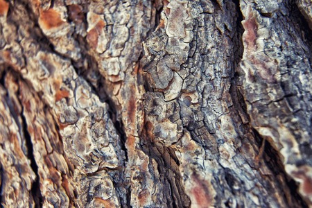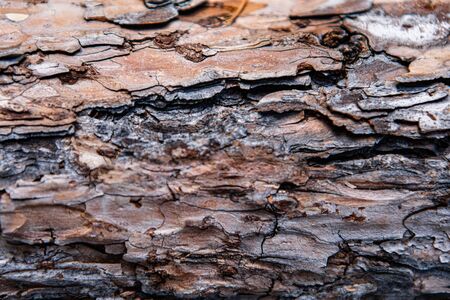 Old wooden tree bark texture. Rustic tree trunk for background usage. Relief texture of the natural tree. Close-up view of natural texture