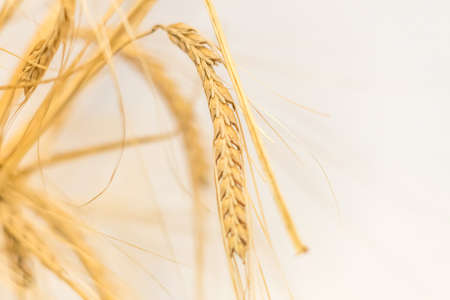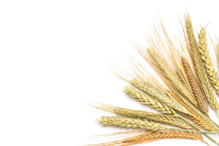Wide range of dried grains. Spikelet selection isolated on white background with copy space. Agricultural biodiversity concept