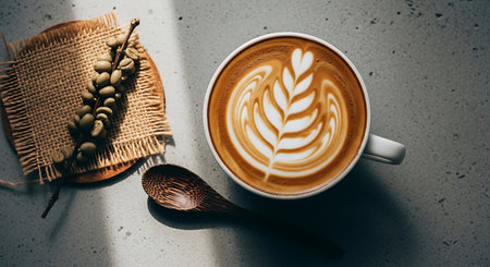 Coffee latte art on coffee bean background in coffee shop