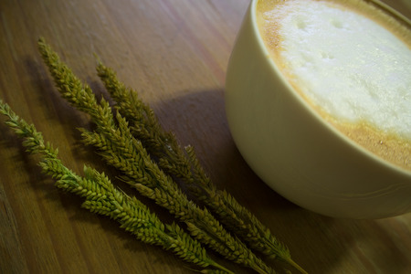 cup of coffee latte art on the wooden desk