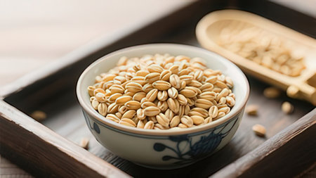 angle view herb JiaoMaiYa or Hordei Fructus Germinatus Praeparatus or Stir-Heating to brown Barley Sprout