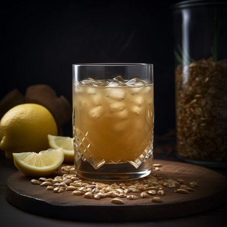 This refreshing drink is made from a syrup of barley and sugar mixed with water, creating a sweet and nutty flavor. Served over ice and garnished with fresh lemon, this drink is both visually appealing and delicious. The aroma is delicate with a hint of sweetness, adding to the overall sensory experience.