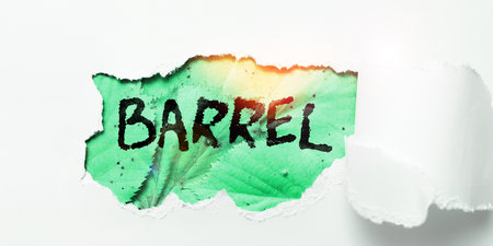 Text sign showing Barrel. Concept meaning cylindrical container bulging out in the middle made of wooden staves
