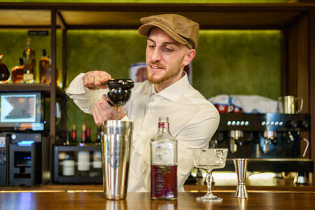 Bartender concocts a cocktail in the public house