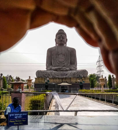 Giant Buddha statue the pride of Buddhism image is taken at bodhgaya bihar india. it is very sacred and spiritual for buddhism.