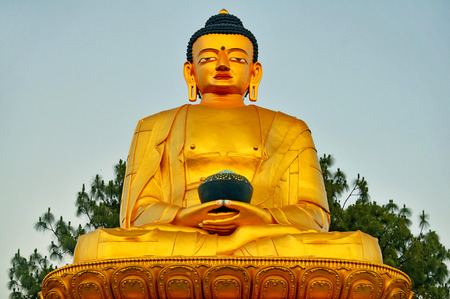 Ancient Giant Buddha Statue in Bodhgaya, India. Bodhgaya is the most revered of all Buddhist sacred sites.