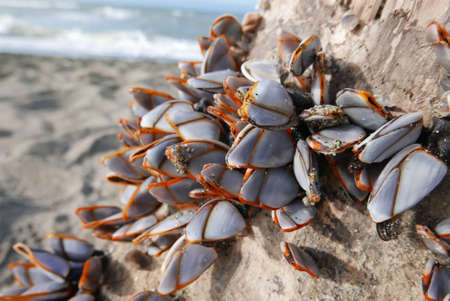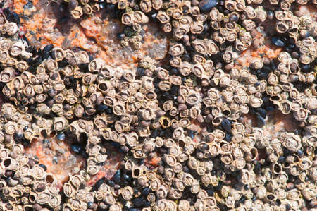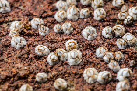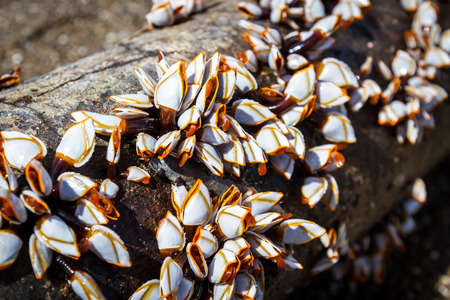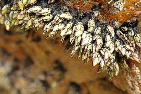 Group of Barnacle shells closeup view on a rock, Iceland
