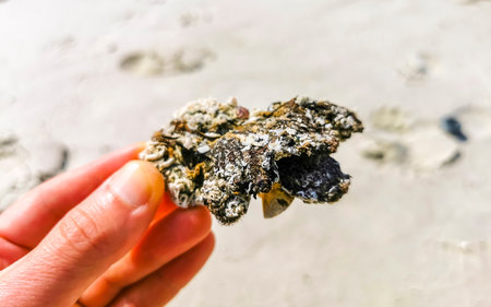 cluster of mussels on a piece of drift wood in the pacific coast of Costa Rica