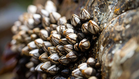 Close up barnacle clusters on weathered rock coastal neutral wallpaper background representing marine texture detail suitable for natural ocean design
