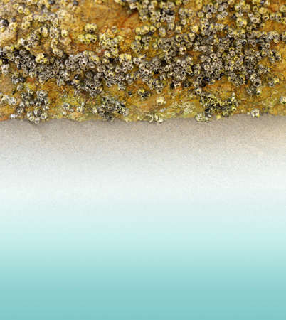 rock sea green with shells on sand beach