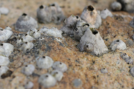 Barnacle shell on the rock by the sea