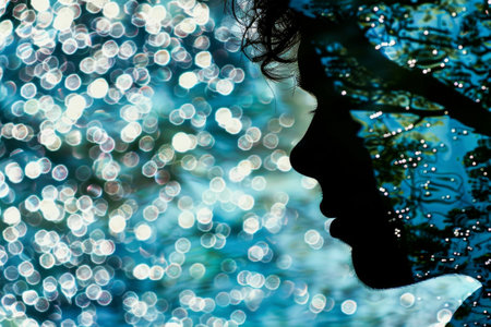 A graceful silhouette of a person standing in front of a tall tree, their outline highlighted against the background.