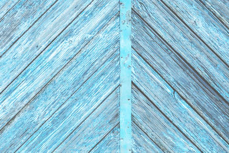 Blue color old wooden minor diagonal to both sides planks with peeled paint background