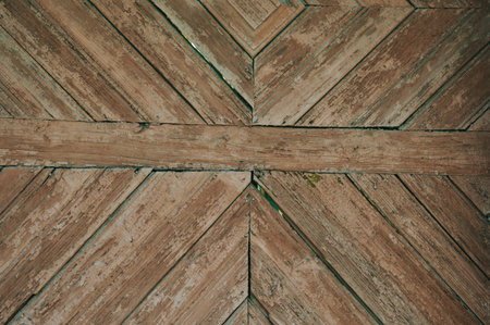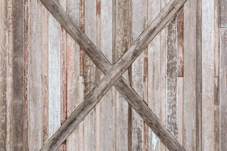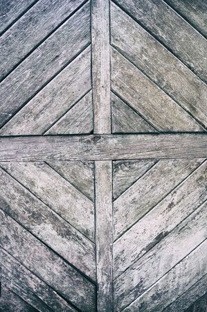 Wooden panels and planks of rural house door, Italy. Walls and ornaments in painted wood for the country house, ruined by time.