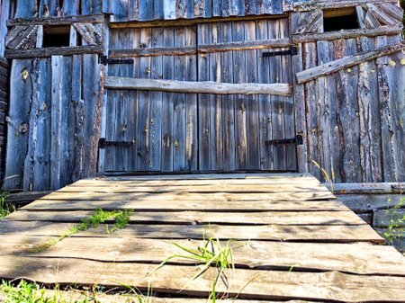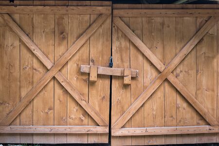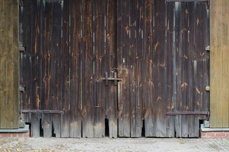 several old wooden gate in a barn in the countryside, close-up of an old rustic building