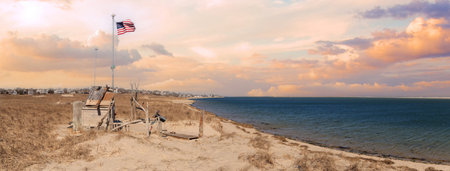 Nantucket Island Landscape, Soft Light Sunset and Houses in the distancenear the Beach