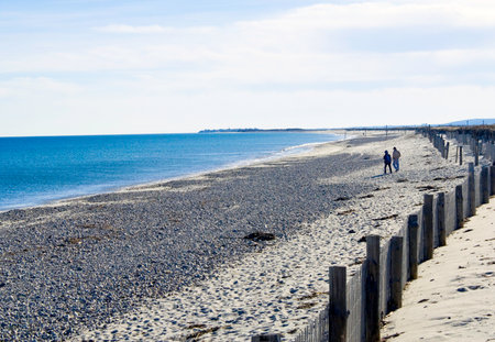 Wide and expansive coastal beach on National Seashore Herring Beach Cape Cod USA.