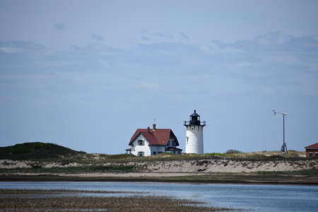 Lighthouse Point on beach dunes, Race Point Light Lighthouse in Cape Code, New England, Massachusetts, USA.
