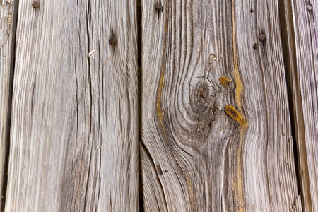 Weathered wooden background, closeup. Aged wooden surface with old rusty nails