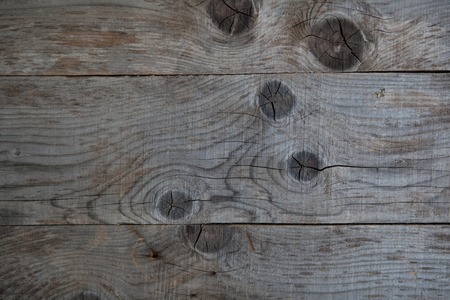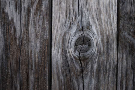 Wood knot on worn wooden plank, selective focus with blurred part as copy space background