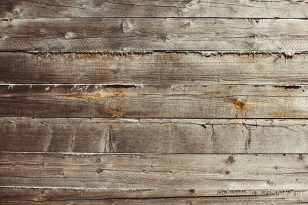 Wooden background. Old wood Board surface. 19th century. Unpainted wood. Boards, darkened by time. Board with knots. Forged nails.