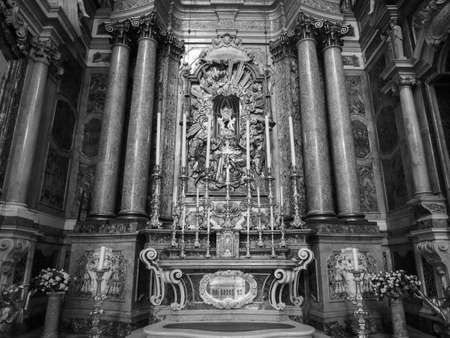 BOLOGNA, ITALY - CIRCA SEPTEMBER 2017: Interior view of the Church of San Petronio in Piazza Maggiore in black and white